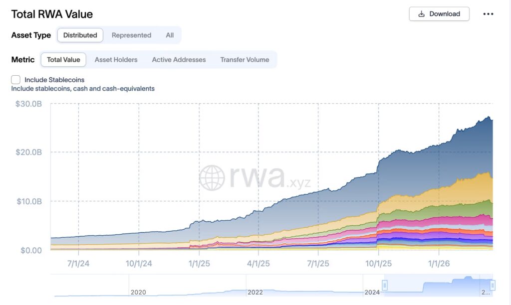 O mercado de ativos do mundo real tokenizados está crescendo rapidamente, tendo triplicado em valor para US$ 26 bilhões no último ano, Dados da RWA.xyz shows. Esse crescimento foi impulsionado pela demanda por retornos mais estáveis e previsíveis do que aqueles normalmente encontrados em empréstimos de criptomoedas e outras estratégias especulativas.